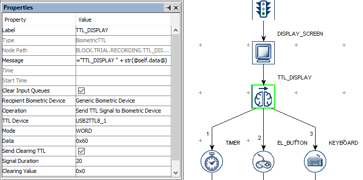 - The TTLs / Messages mark key trial events (such as stimulus onset / participant response etc), allowing the two data streams to be synchronized at the analysis stage.